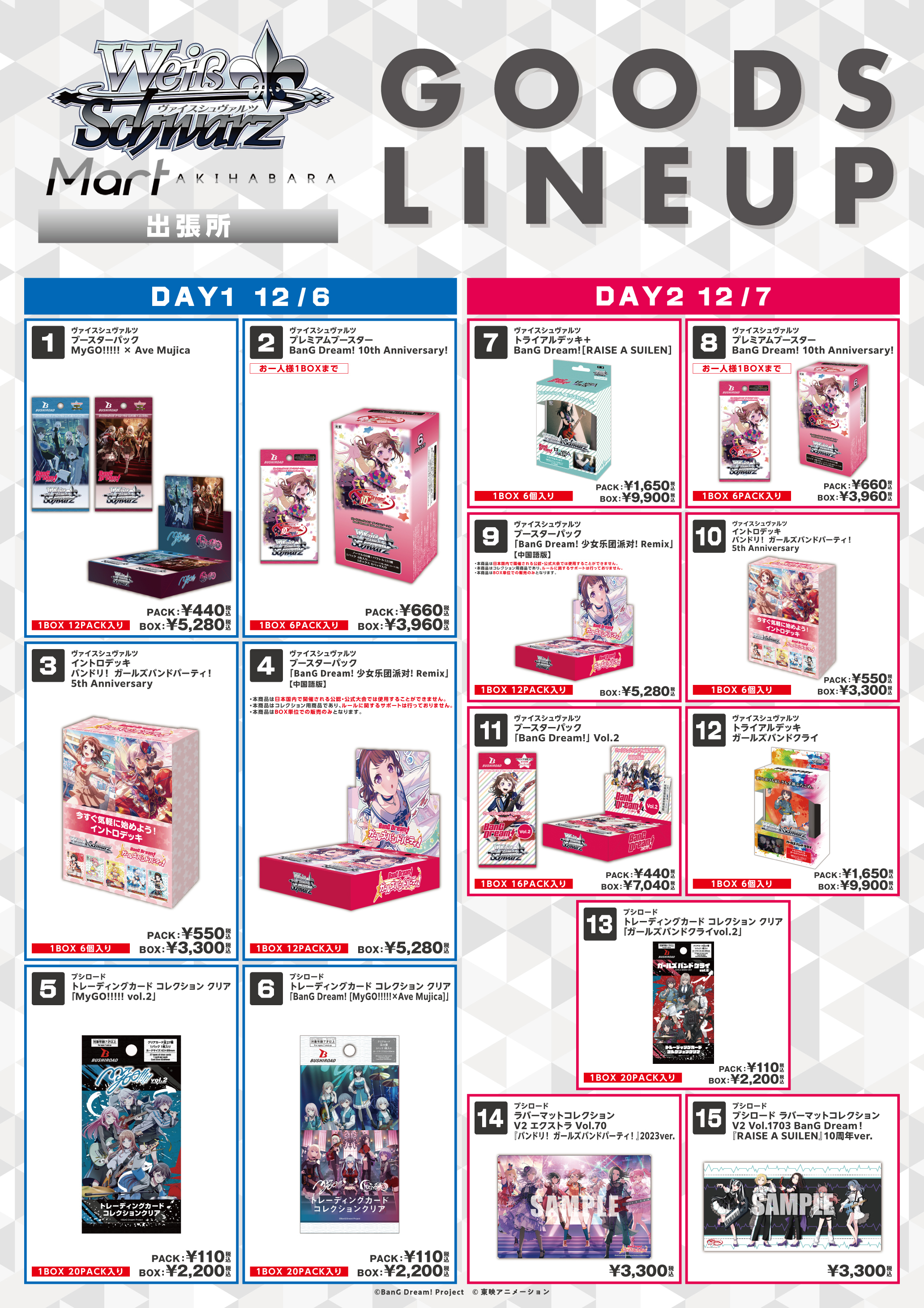 当日の完売情報は、ブシロード イベントグッズ&完売情報X(https://x.com/Bushi_goods)よりチェックしてください。